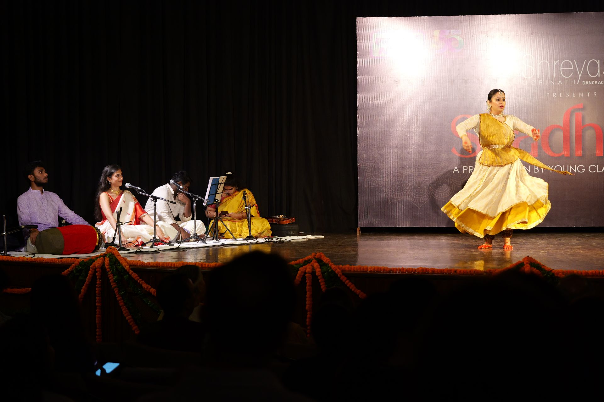 Saadhana 2025 continued our tradition of inviting young artists from a senior Guru’s school, to present a different art form and showcase their talen. Such an experience enriches the audience’s immersion in dance, and expands the horizons for parents and family too.